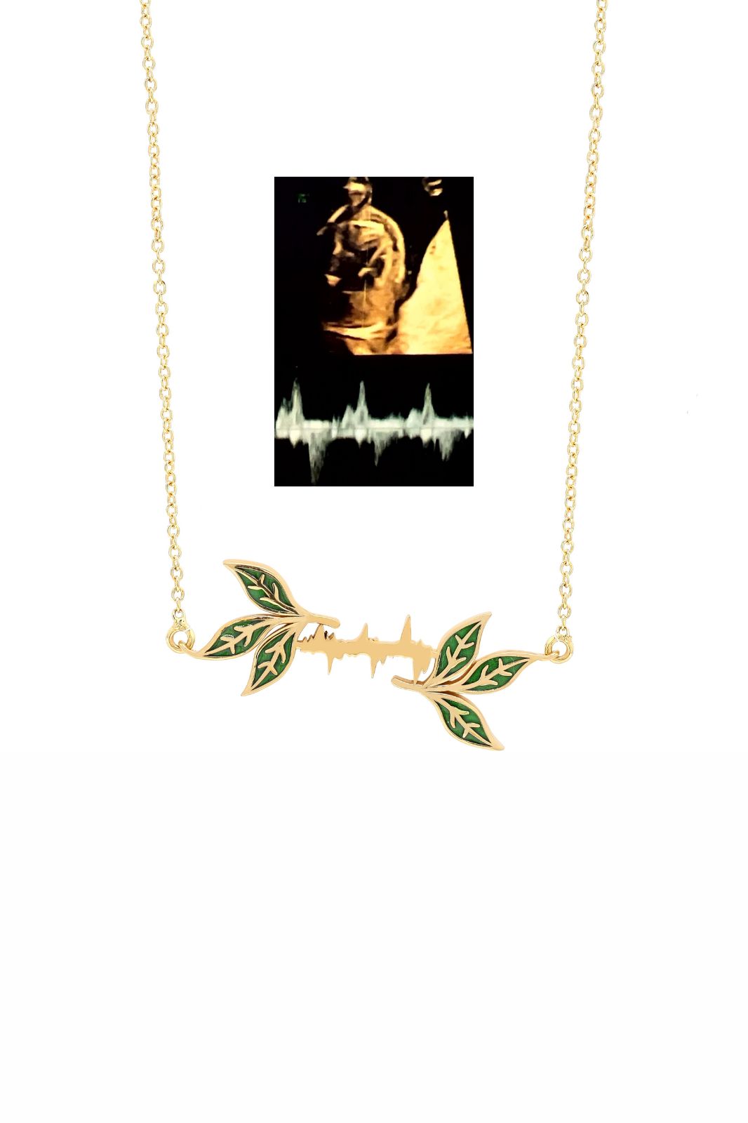 Embrace the rhythm of life with our Lubb Dupp Caress Necklet (Pendant). Crafted from a real sonogram, this unique pendant captures the essence of your baby’s heartbeat, transforming it into a stunning piece. Cherish your most intimate moments and keep them close to your heart with this personalized Caress Leaf Enamel Gold Necklace, a symbol of everlasting love. The colour in the image of the product is for representation. There could be a slight colour variation in the final product. The chain provided along with the pendant is silver/gold vermeil.